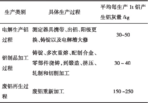 所有的鋁冶煉鑄造技術(shù)中都會(huì)產(chǎn)生鋁灰,工序不同鋁灰在其中的含量占比也不同,具體見(jiàn)表1。
